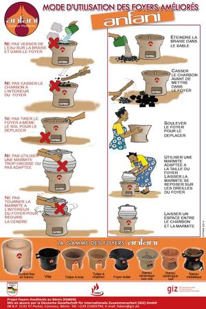 Mode d'utilisation des foyers améliorés. An instruction to "good practice" and "bad practice" of the stoves for Benin.