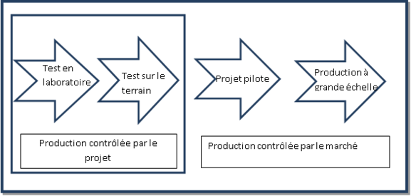 Dans la phase de développement ou d’adaptation du produit, la production de foyers améliorés est contrôlée par “ le projet”. Une fois que le foyer amélioré est prêt pour être testé sur le terrain et introduit sur le marché, le contrôle de la production est progressivement remis aux forces du marché. Cette transition est très difficile et beaucoup de projets échouent à cause de l'incompatibilité entre les systèmes de production du projet et du marché.