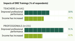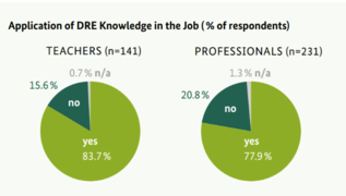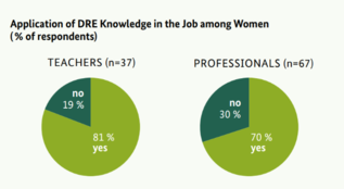 Specifically analysing female participants (teachers and professionals), 81 % of the female teachers apply their newly gained DRE knowledge at work. However, of the surveyed female professionals only 70 % compared to 78 % of all professionals apply the newly learnt content in their job. Among the 30 % women that do not apply the knowledge, a large majority stated as their current job either “student of RE technology” or “other” (see figure 3). Thus, these women either do not have a job (yet) to apply the knowledge in or work in other jobs (e.g. public institutions) were they cannot apply the knowledge but needed the capacitation as a background. Cultural norms and established stereotypes may also keep them from pursuing a profession in RE although they are qualified for it.